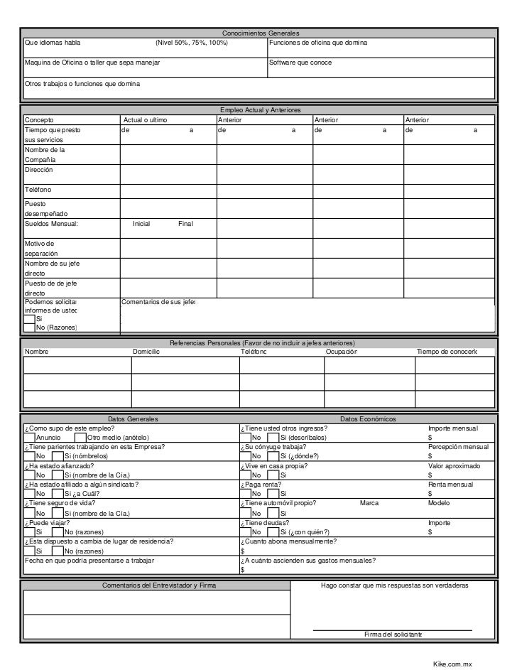 solicitud empleo llenar ingles nivel conocimientos idiomas funciones oficina kike