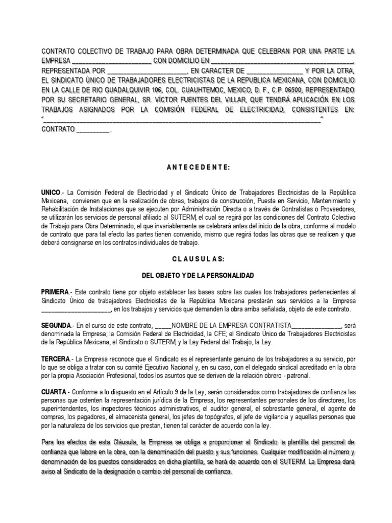 Contrato Colectivo De Trabajo Para Obra Determinada